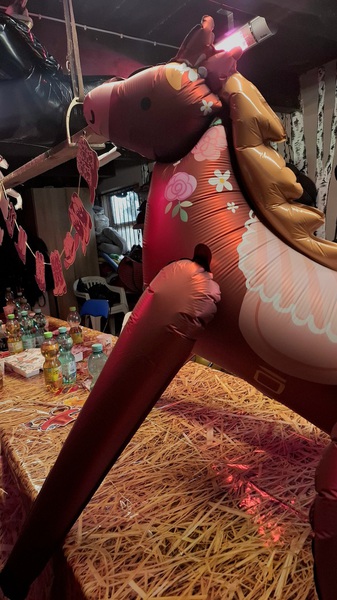 Als Räumlichkeit steht unsere liebevoll eingerichtete Sattelkammer zur Verfügung. Hier kann in rustikaler Atmosphäre gefeiert, Kuchen gegessen und Geschenke ausgepackt werden. Die Sattelkammer bietet Schutz bei jedem Wetter und sorgt für eine echte Bauernhof-Atmosphäre.